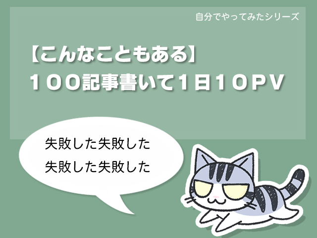 そうです、あなたが今読んでるこのブログ、100記事書いても一日10PVくらいしか無いんだぞ!