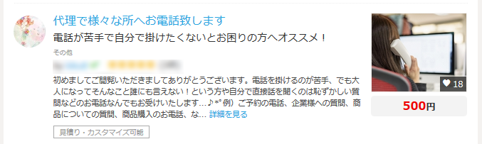 電話で企業への商品質問や電話予約、商品購入の電話が苦手っていう人向けのサービスですね。私は最近電話することが増えたので、別にどうということはないのですが電話に慣れていない人、電話口で話すのが恥ずかしいという人向けのサービスですね。
