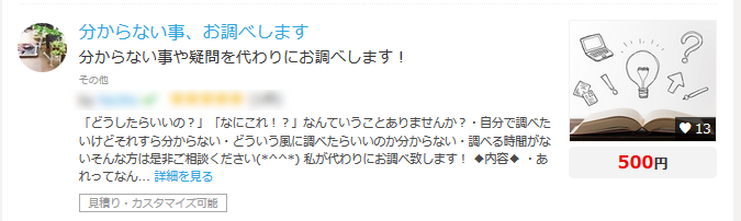 また、ココナラには「その他」というカテゴリがあり、上述した一般カテゴリには含まれないサービスがここに分類されています。いくつか例を挙げてみますね。