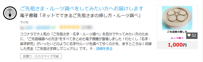 そういった方向けに、自分で調べるための方法をまとめた電子書籍を販売しているのが上記の方ですね。さらにハイレベルなルーツ探し調査サポートもしていて、副業としては申し分ない人気を博しているようです。