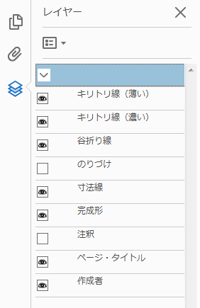 PDFを開いたら、まずは不要な部分のレイヤー(のりづけ、注釈)を非表示にします