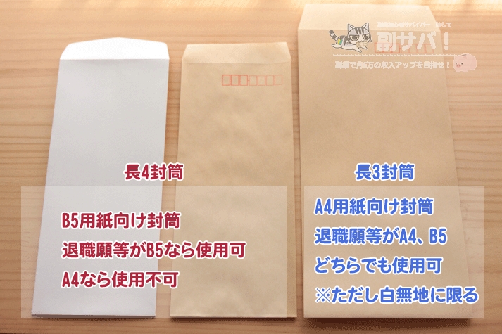 そのため、退職願・退職届がA4(210×297mm)用紙の場合は必ず長3白無地封筒が必要になるのです。