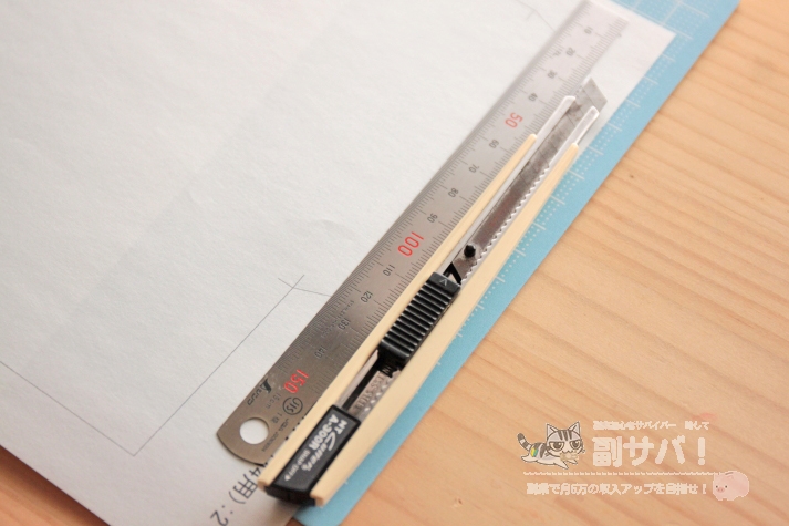 これを縁の線に沿って切り取っていきますが、切り取りには必ずカッターと定規を使ってください。